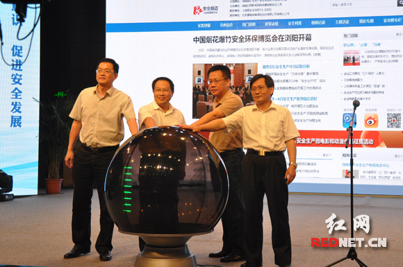 当天的启动仪式上,湖南省安委办副主任、省安监局副局长李大剑,湖南省安监局副局长、新闻发言人罗德龙,湖南省委宣传部新闻发布处处长姚伟红,中南传媒董事、红网党委书记、董事长舒斌一同点亮水晶球,启动红网安全频道。
