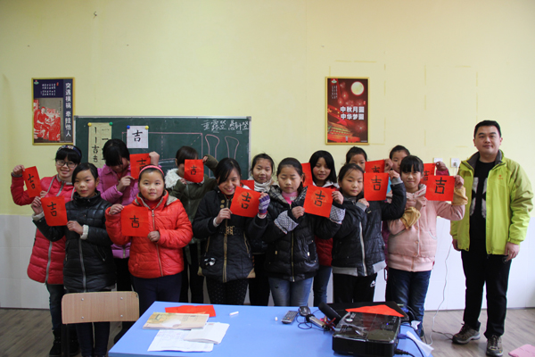 湖南美术出版社青年员工与可爱的孩子们共写“吉”字。