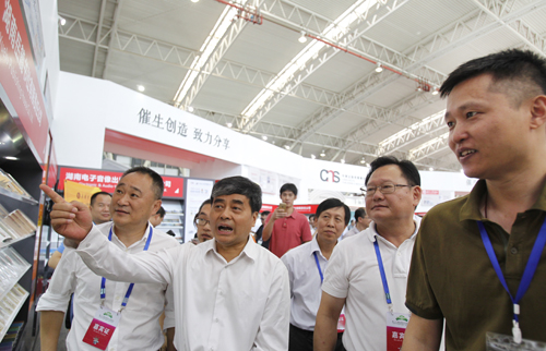 国家新闻出版广电总局副局长吴尚之在7月28日上午视察湖南展馆时详细了解了岳麓书社“四大名著”(名家演播版)的情况,他对这套图书的出版表示肯定:“你们通过与新技术的融合,把‘四大名著’搞活了。读者是多样的,需要纸介质,也需要聆听,你们这种融合发展做得很好。”