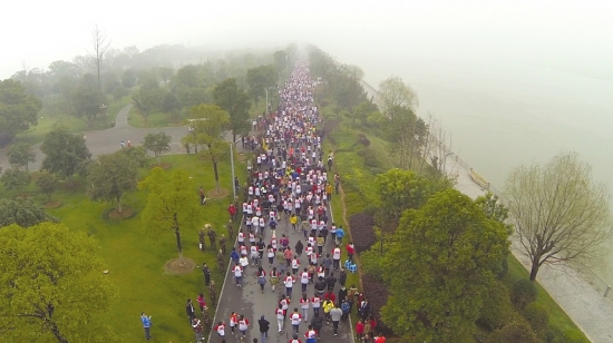 2014年3月9日,“让餐桌更安全,让城市更有爱”潇湘晨报第十三届读者节启动仪式暨中海地产·“为爱而来”——2014橘洲公益马拉松赛在长沙橘子洲举行,4000多人尽情奔跑。阴雨多天的长沙也在上午放晴,正如现场参赛者说:有一种爱,能冲破雾霾,看到阳光。