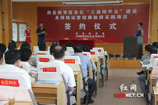 南县是省教育厅确认的湖南省教育信息化“三通两平台”建设试点县。遵循省教育厅提出的“政府引导、企业参与、学校应用、服务驱动”的基本建设原则,南县于2013年9月启动相关工作,2014年5月份开始全面推进。县教育局经过深入研究、科学论证,在选择合作的运营企业时,提出建设运营公司必须选择具备优质教育资源研发、汇聚、推送能力,具有网络教研发能力,具有教育网络平台管理能力,具有团队培训、服务和市场培育能力等四大能力及相关资质。天闻数媒公司作为中南出版传媒集团与华为合资的专业从事数字教育的公司,汇聚了中南传媒优质的内容资源与华为深厚的先进技术,开发与运营数字教育产品,完全符合南县教育局提出的要求。