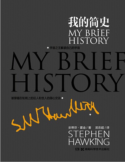 2014年7月25日,在湖南科学技术出版社“首席编辑荐书”活动中,史蒂芬·霍金新作《我的简史》上市发布。与之前的《霍金传》、《飞向无限》这两本由别人撰写的传记不同,这是第一本由霍金亲自著述的自传。该书定价42元,由中南出版传媒集团旗下湖南科学技术出版社出版发行,首印达到了50000册,将通过全国的新华书店、网上书店等渠道公开发行。其特别设计的霍金亲笔签名的镂空封面和精装效果,使本书兼具很好的阅读价值和收藏价值。