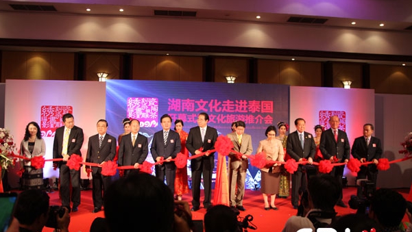 中国驻泰大使宁赋魁表示,2014年是中国—东盟文化交流年,作为交流年活动的一部分,“湖南文化走进泰国”充实了中国—东盟文化交流年活动的内容,对增进湖南与泰国的文化交流与合作将起到积极推动作用。