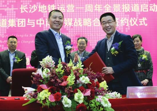 一年前,中南传媒旗下子公司湖南潇湘晨报传媒经营有限公司获得长沙地铁2号线平面广告经营权。战略协议签署仪式上,长沙市轨道交通集团公司董事长、党委副书记彭旭峰表示,地铁的开通,在提供运营服务的同时,也激发了商业潜能。通过轨道集团与潇湘晨报的合作,媒体空间资源开发取得的经营业绩和社会效益达到了国内先进水平,成为国内新开通地铁媒体空间运营的优秀典范。数据显示,长沙地铁2号线2014年经营业绩达到国内一线城市的领先水平,最高上刊率达到65.7%,创造了国内新开通地铁经营之最。而此次长沙轨道集团与中南传媒直接联姻意味着长沙地铁文明风尚以及文化品格将会有一个更高标准的未来。