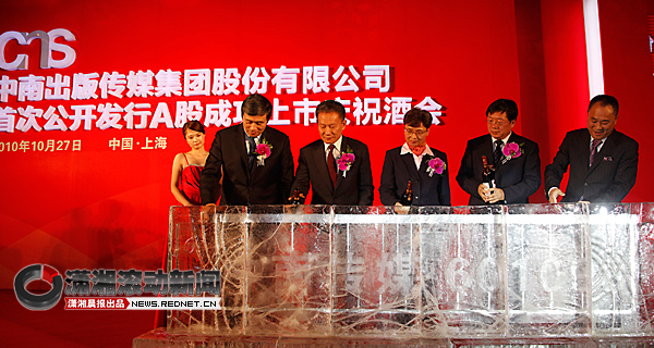 在昨天的酒会上,中宣部副部长孙志军,国家新闻出版总署副署长邬书林,湖南省委常委、宣传部部长路建平,中银国际董事长唐新宇和中南传媒董事长龚曙光等一起用热情的红酒浇铸冰雕,宣告中南传媒正式走向资本市场。