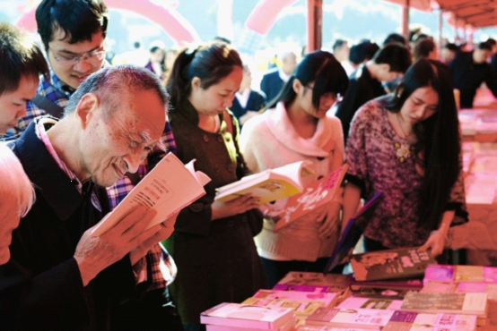 中南传媒旗下各出版社在贺龙体育中心东广场搭建的图书展示台吸引了许多读者。启动仪式刚结束,许又声一行来到展台前,与书迷们一起分享读书的快乐。