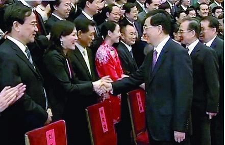 9月26日,全国文化体制改革工作表彰大会在北京人民大会堂举行。会前,胡锦涛、温家宝、李长春、习近平、李克强等会见全体与会代表。(央视截图)
